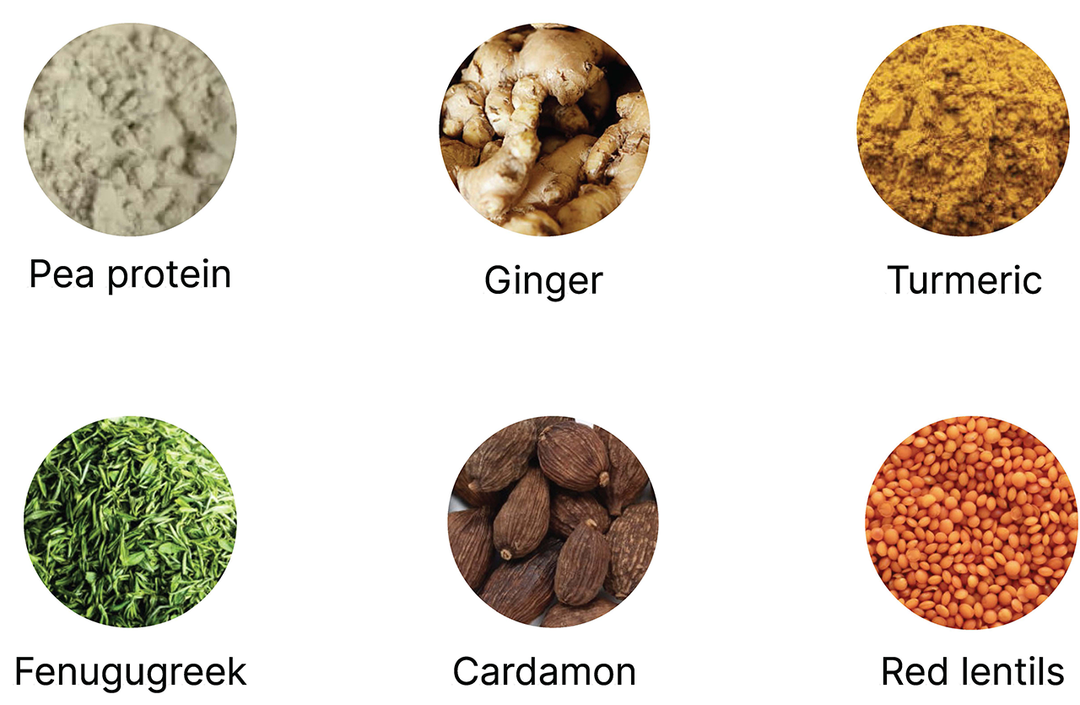Shicken is crafted with ingredients that are as nourishing as they are flavorful. From protein- rich pea protein and red lentils to health- boosting spices like turmeric, ginger, fenugreek, and cardamom, every ingredient is carefully chosen for its natural benefits. These superfoods not only bring authentic flavors but also support your overall well-being, making Shicken a meal you can feel good about.