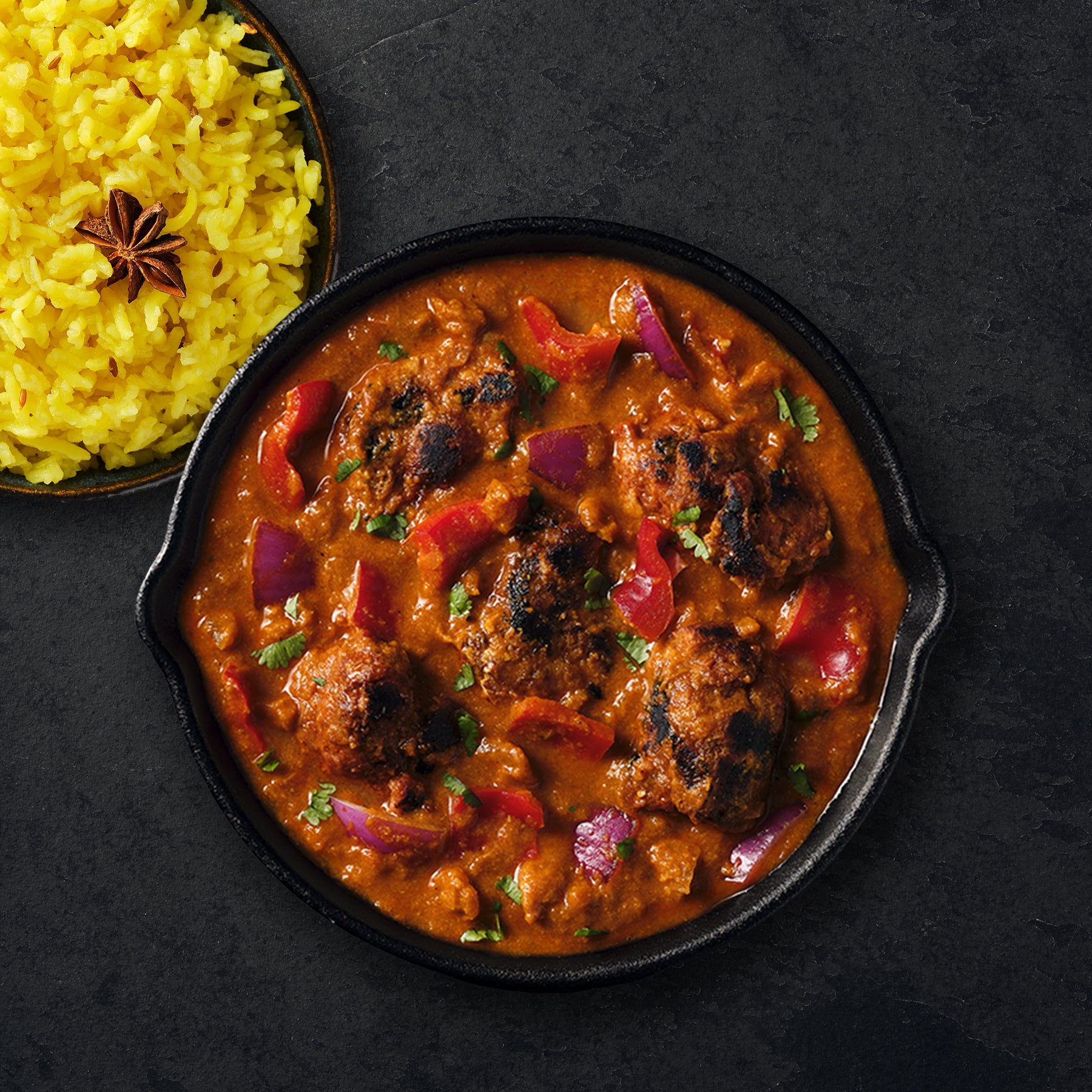 Shicken Tikka Masala is Britain’s favourite curry now made with our plant-based chicken pieces, also comes with a side of rice!
